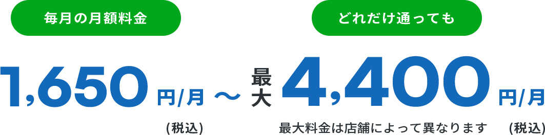 利用料金や最大料金は店舗ごとに異なります。詳しくは各店舗ページをご覧ください。